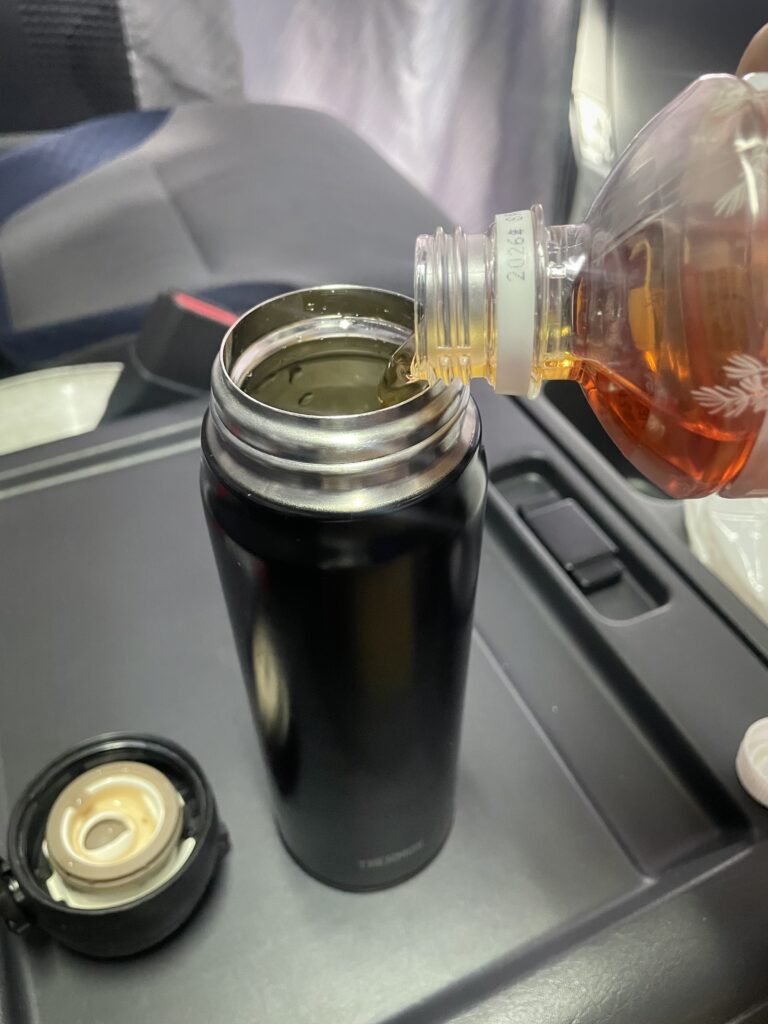 いくら体に良くて美味いお茶でも、夏の暑いキャビンで生ぬるくなったり、冬の夜間走行で冷え切ってしまったら、飲む気が失せますよね。 しかも、冷たいペットボトルは**「結露(水滴)」**が出るから、ドリンクホルダーがビチャビチャになったり、大事な伝票が濡れるリスクがあります。